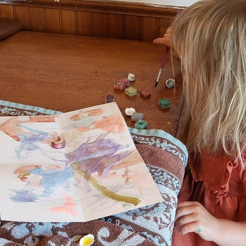 When the little ones are concentrating, let them be. One thing I’ve noticed is even a small thing can break their concentration and they’re off on the next busy toddler task. My little got bored after the last panel, so we took a break. I left all the supplies out and a bit later I discovered her painting on the second page! This was an all day project- super fun to see her working quietly with such determination!!