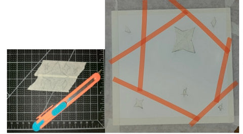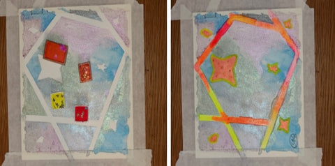 To start off, I am taping down the edges of my paper and using some thin washi tape to create some shapes or lines on the page. You can do a specific shape using the washi tape, or you can lay down the tape on a mat, sketch it out, then use a cutter to cut out the shape. (Cutting out the shape is advised when prepping and you have a clear head) Once you have the tape down, it is time for the painting.