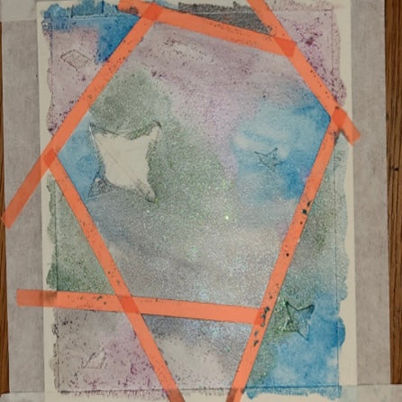 Once dry, remove the border tape. This piece doesn’t have to be beautiful because it was about the process and being mindful. If I wanted to post it to Instagram as a perfect piece, I would have chosen a different palette and would have been more careful with the edges. I like looking at the color combination being slightly strange and remembering how I was feeling.