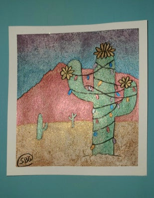 So, for my improbable desert roll, I had two thoughts: Georgia O’Keeffe later in life paintings or Snoopy’s brotherSpike from Peanuts that lives in the desert. I decided to go with the cartoon style and this was my result.