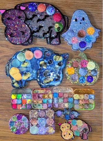 For this activity, you will need painting supplies as well as dice or a dice roller on your phone. The first step is to pick your palette. The reason for choosing palette first is so when the prompts are chosen, you will not be tempted to grab a comfortable color palette and try a combination you might not normally use. You can do this by assigning numbers to colors and rolling the dice a couple times to pick colors, or you can use a premade palette. I have twelve SmilingHippo palettes (I’ve been collecting them for a while) and I used a twelve-sided dice to choose one. If you have more than 6 and have only a six-sided dice there is a way to choose using the dice: