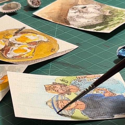 Working on multiples really helps with both letting my paint dry and giving my paper a chance to breathe, as well as satisfying my need to keep my hands busy the whole time I’m painting.