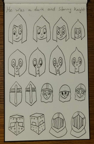 Drawing a character for a novel doesn’t need to be detailed or of artist quality. It is an aid to help you visualize your character to describe them better or see if your description gives the impression you want it to. In this blog, I will be playing around with the appearance of a character who doesn’t have a story. I want to write a story inspired by the line “He was a dark and stormy knight.” This line was a parody of Edward Bulwer-Lytton’s line “It was a dark and storm night” that Charles Schultz had Snoopy type.