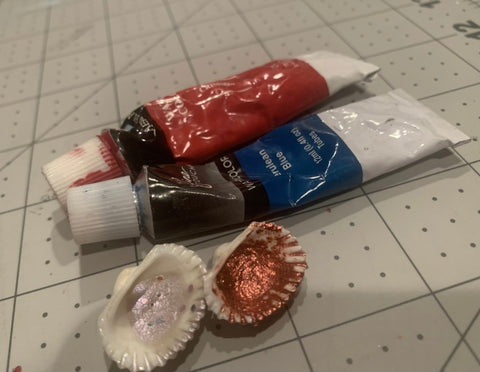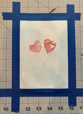For my materials, I used a cup of water, painter’s tape, a pencil, a sharpie marker and pen, Crimson red and Cerulean blue watercolor paints, and some lovely red and silver glitter paints from Waves of Expression’s shop.