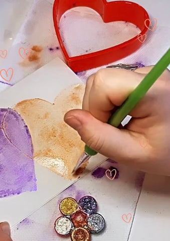 - I layered the gold color from my Flower Pallet on top of the first heart using the first three steps.