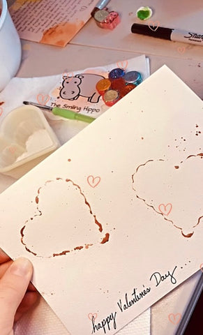 - I then used the cookie cutter as a stamp, and pressed firmly on the cookie cutter onto the paper, in some instances I tapped it to make sure the paint went onto the card.